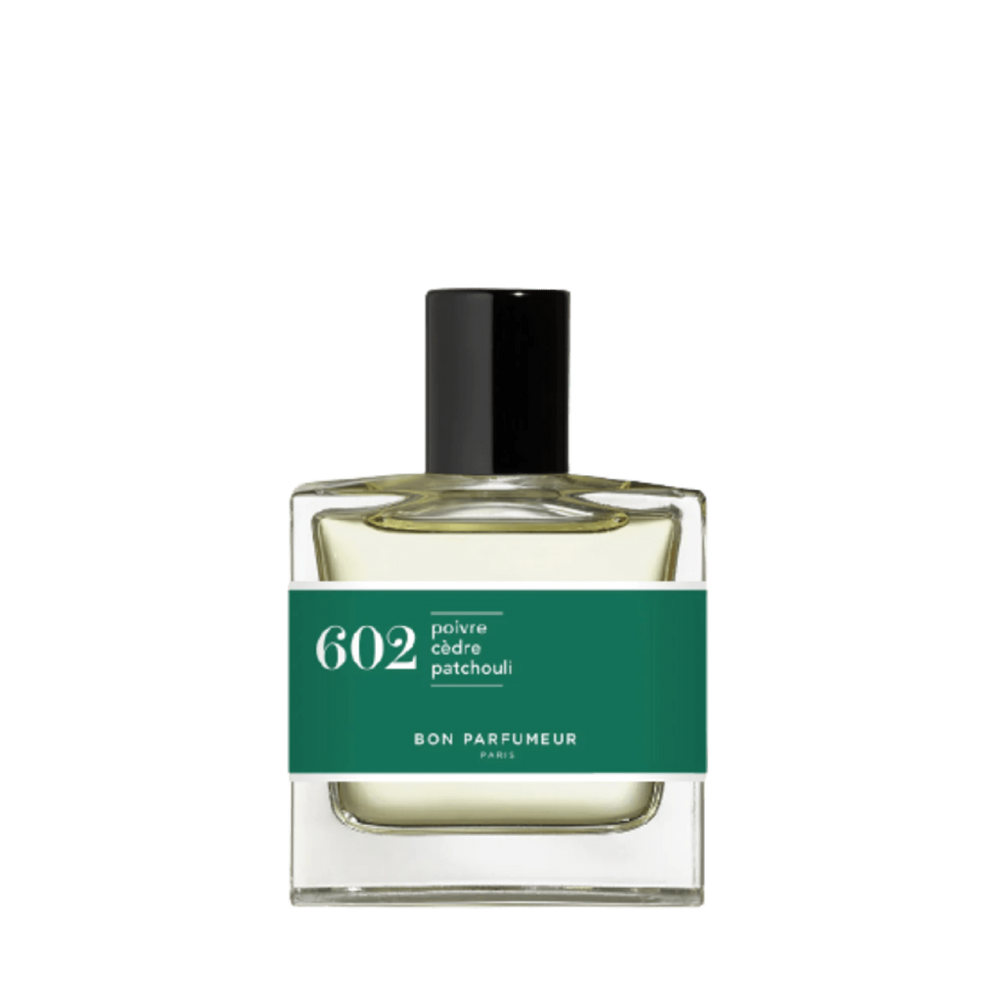 Il 602 di Bon Parfumeur inizia regalando luminose note agrumate, dove si riconosce l’aspro pompelmo e la freschezza della menta. La nota di cuore libera un carattere più freddo e speziato, con pepe e oli essenziali di bacche. La fragranza accoglie essenze legnose di patchouli, cedro e vetiver. Infine, la composizione sviluppa toni fumosi e mistici.